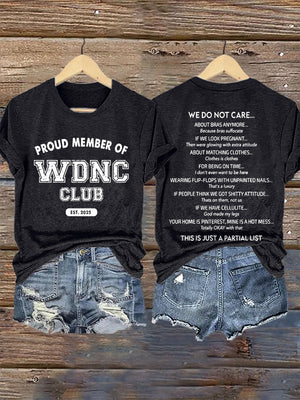Retro Proud Member Of WDNC Club Est. 2025 We Do Not Care Print T-Shirt