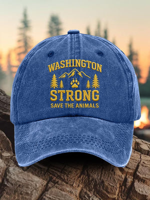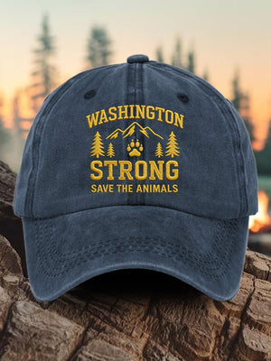 Retro Washington Strong Save The Animals Print Baseball Cap