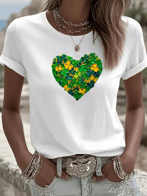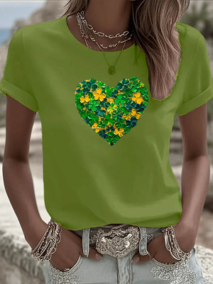 Home St. Patrick'S Day Heart Pattern Round-Neck 100% Cotton 180g T-Shirt
