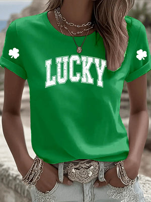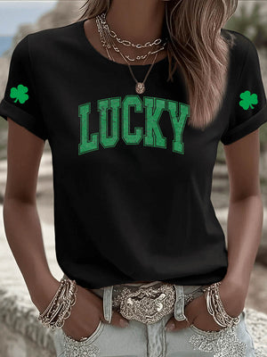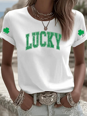 St. Patrick'S Day Luck Clover Pattern Round-Neck 100% Cotton 180g T-Shirt