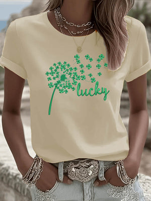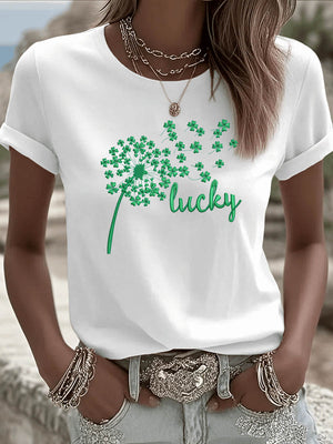 St. Patrick'S Day Lucky Dandelion Pattern Round-Neck 100% Cotton 180g T-Shirt
