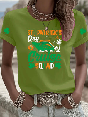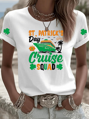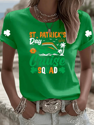 St. Patrick'S Day Pattern Clover Round-Neck 100% Cotton 180g T-Shirt