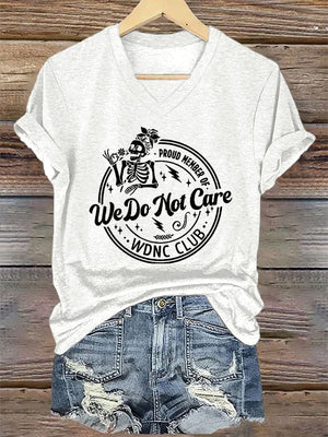 V-Neck Retro Funny Proud Member Of WDNC Club We Do Not Care Menopause Perimenopause Print T-Shirt