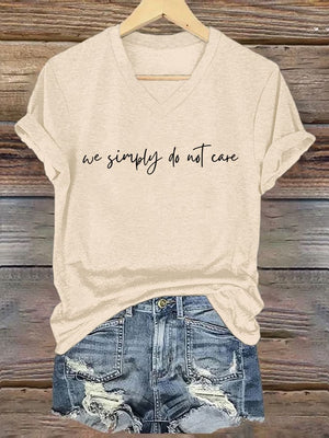 V-Neck Retro Funny We Simply Do Not Care Menopause Perimenopause Print T-Shirt