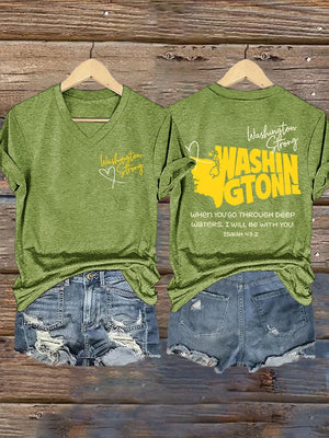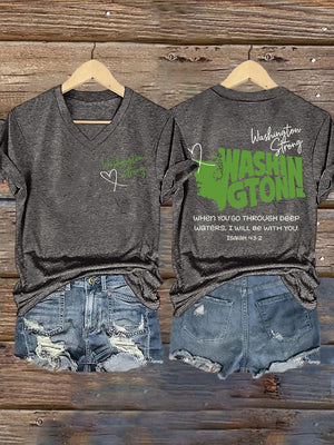 V-Neck Retro Washington Strong When You Go Through Deep Waters, I Will Be With You Isaiah 43:2 Print T-Shirt