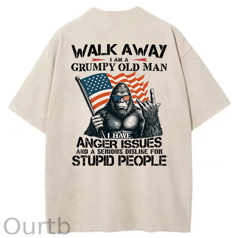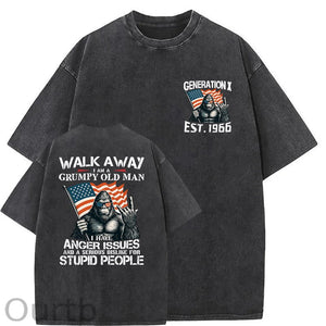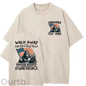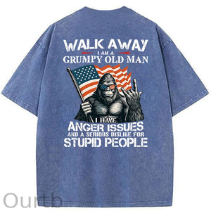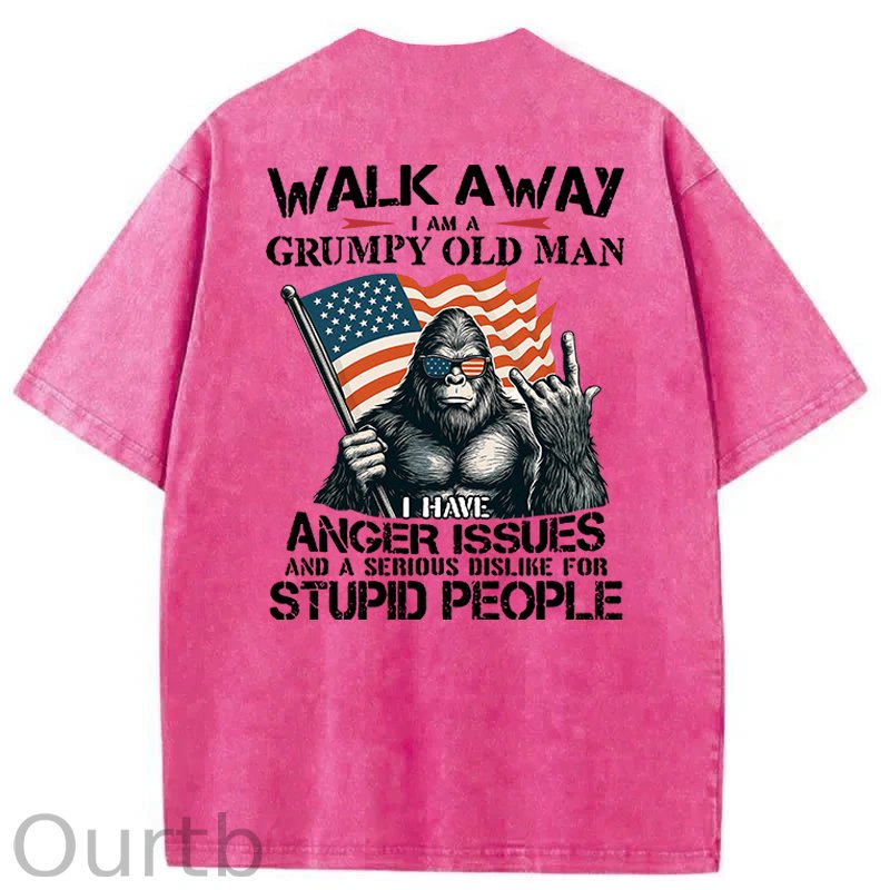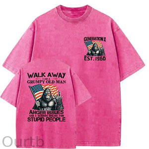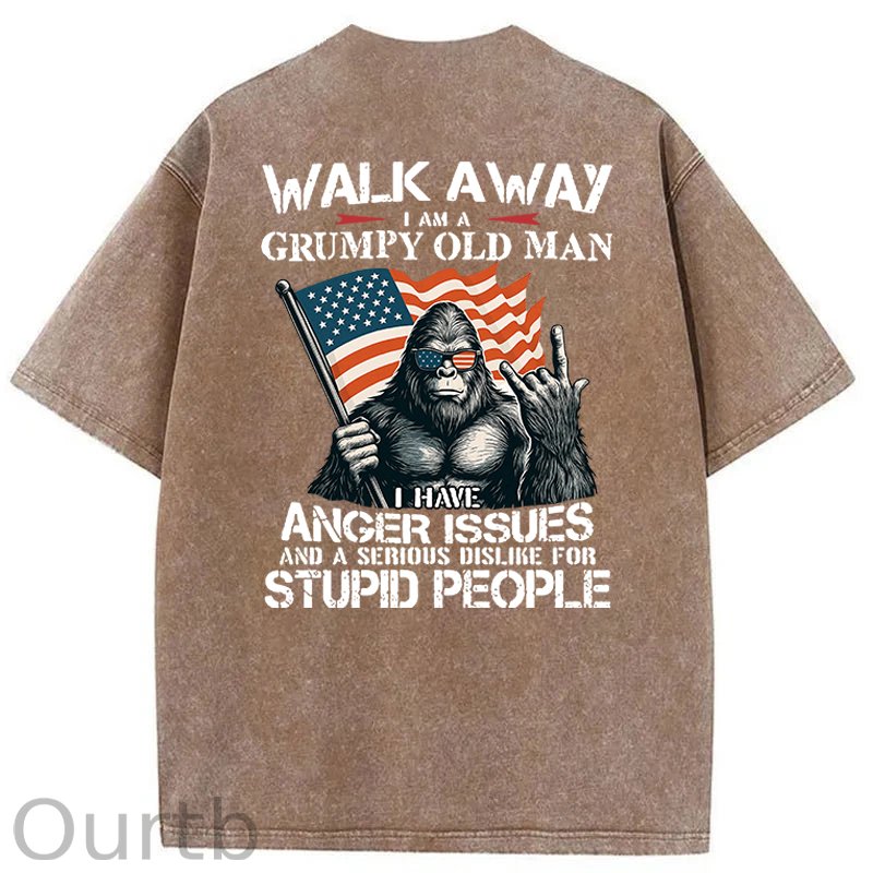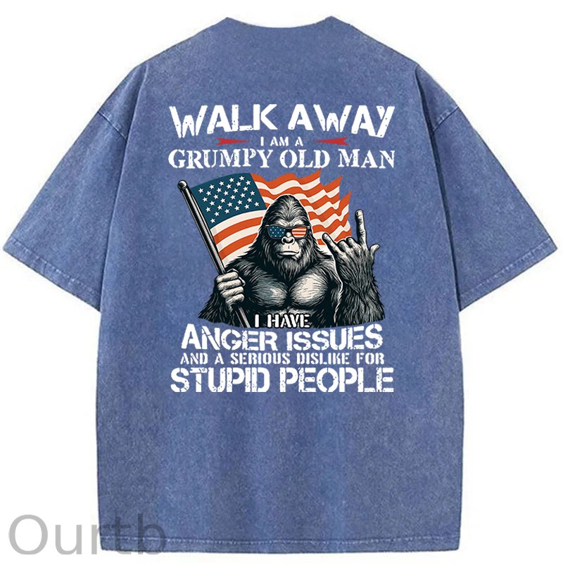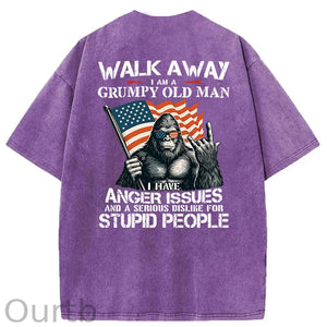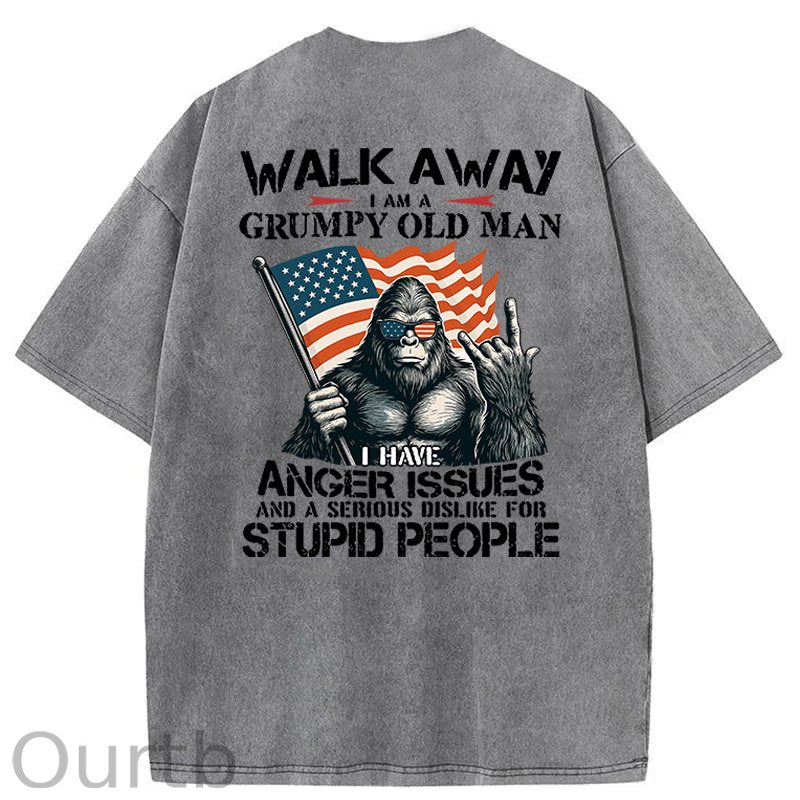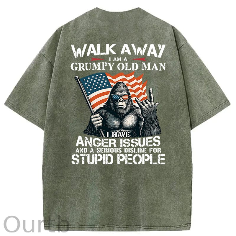 Walk Away I Am A Grumpy Old Man America BigFoot Gen X Washed T-Shirt
