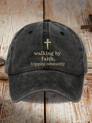 Walking By Faith Tripping Constantly Printed Baseball Cap