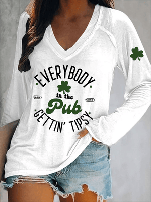 Women's Everybody In The Pub Getting Tipsy St. Patrick's Day Print V-Neck T-Shirt