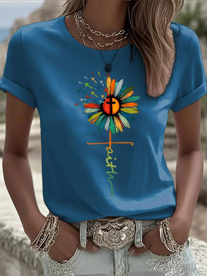 Women's Faith Sunflower Print Crew Neck Casual T-shirt