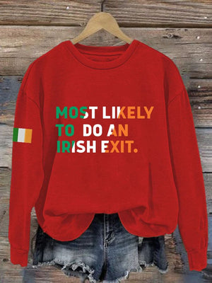 Women's Most Likely To Do An Irish Exit Irish Beer Lovers Print Crew Neck Sweatshirt