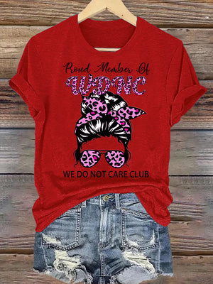 Women's Round-Neck Retro Funny Proud Member Of WDNC Club We Do Not Care Menopause Perimenopause Print T-Shirt