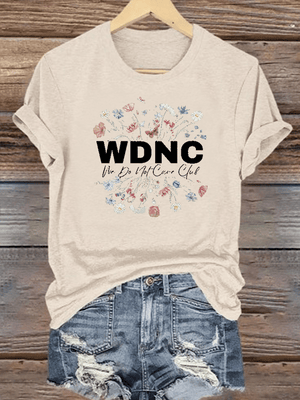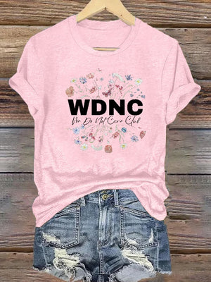 Women's Round-Neck Retro Funny Proud Member Of WDNC Club We Do Not Care Menopause Perimenopause Print T-Shirt