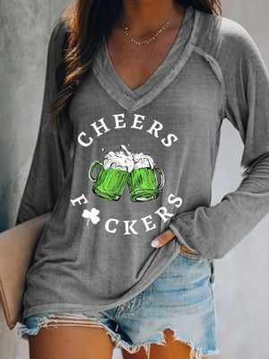 Women's St. Patrick's Day Cheers F*uckers Clover Long-Sleeve T-Shirt