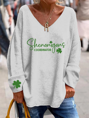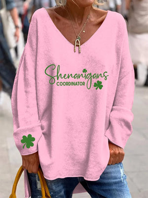 Women's St. Patrick's Day "Shenanigans Coordinator" Printed V-Neck Long Sleeve Top