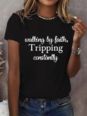 Women's Walking By Faith Tripping Constantly Print T-Shirt