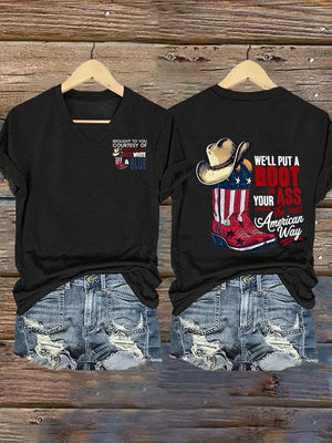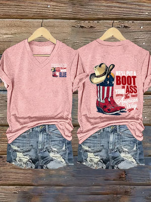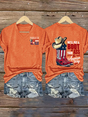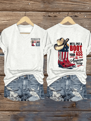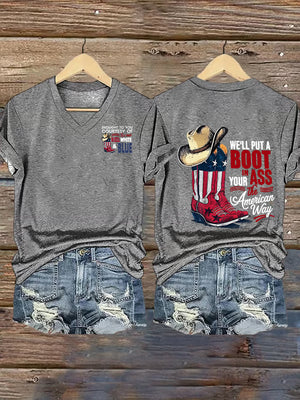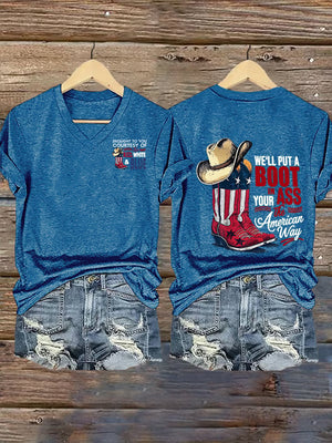 Women's V-neck WE'LL PUT A B00T IN YOUR ASS Print T-Shirt